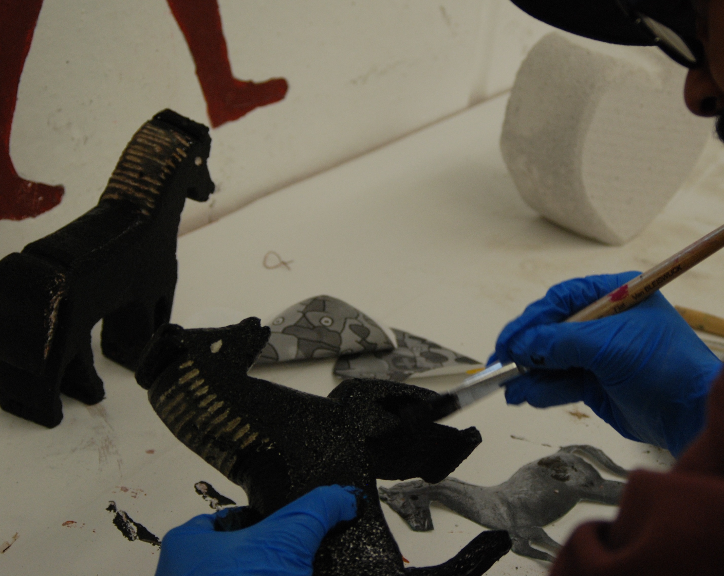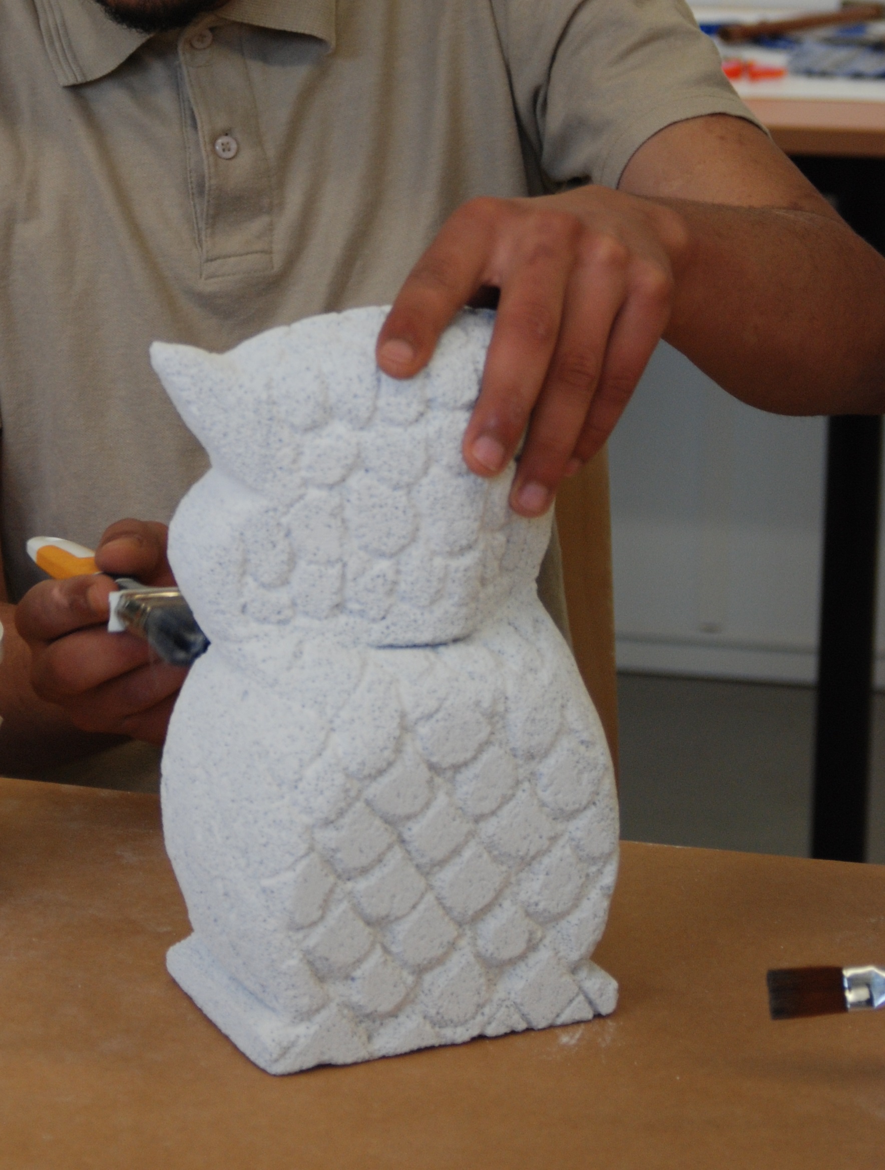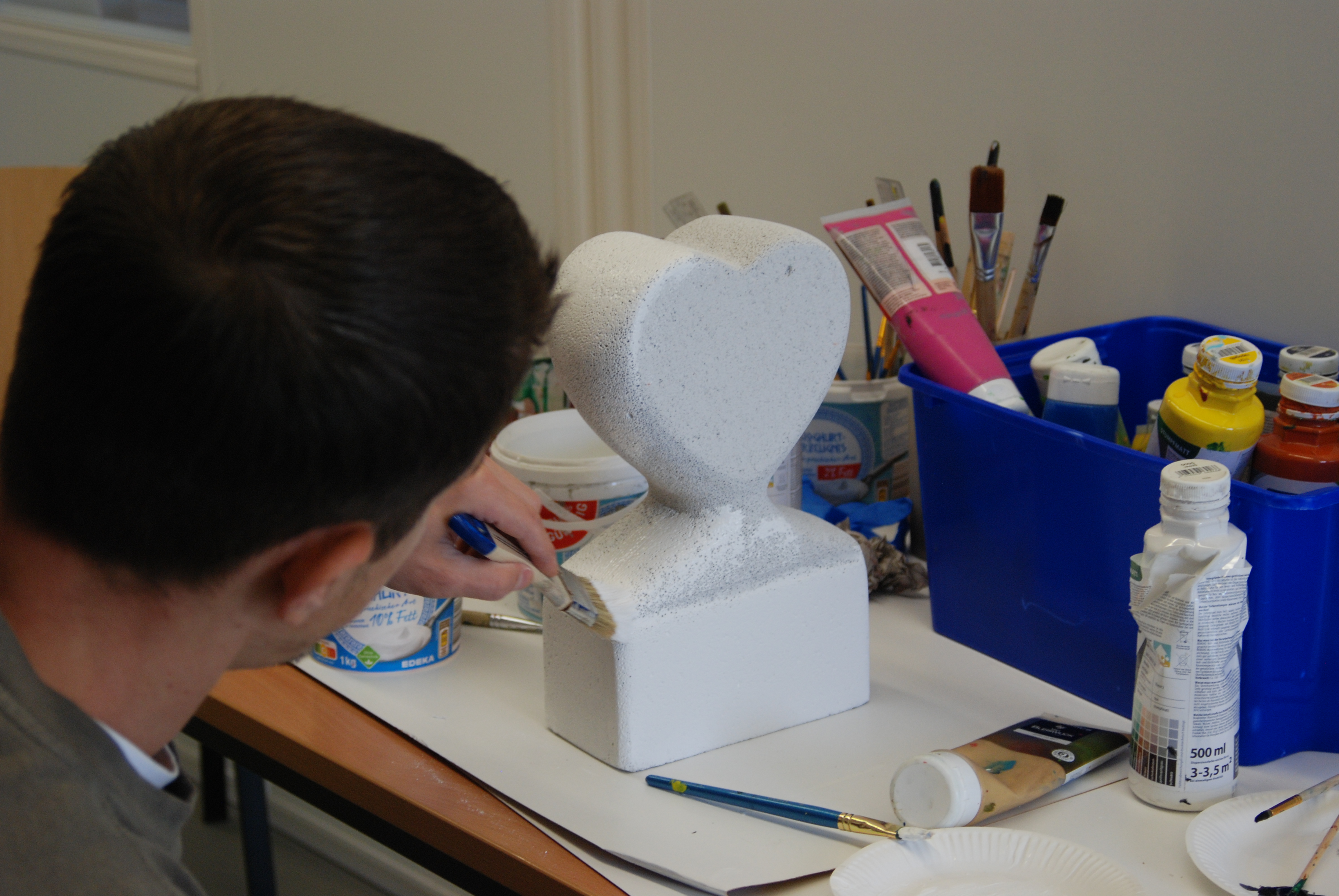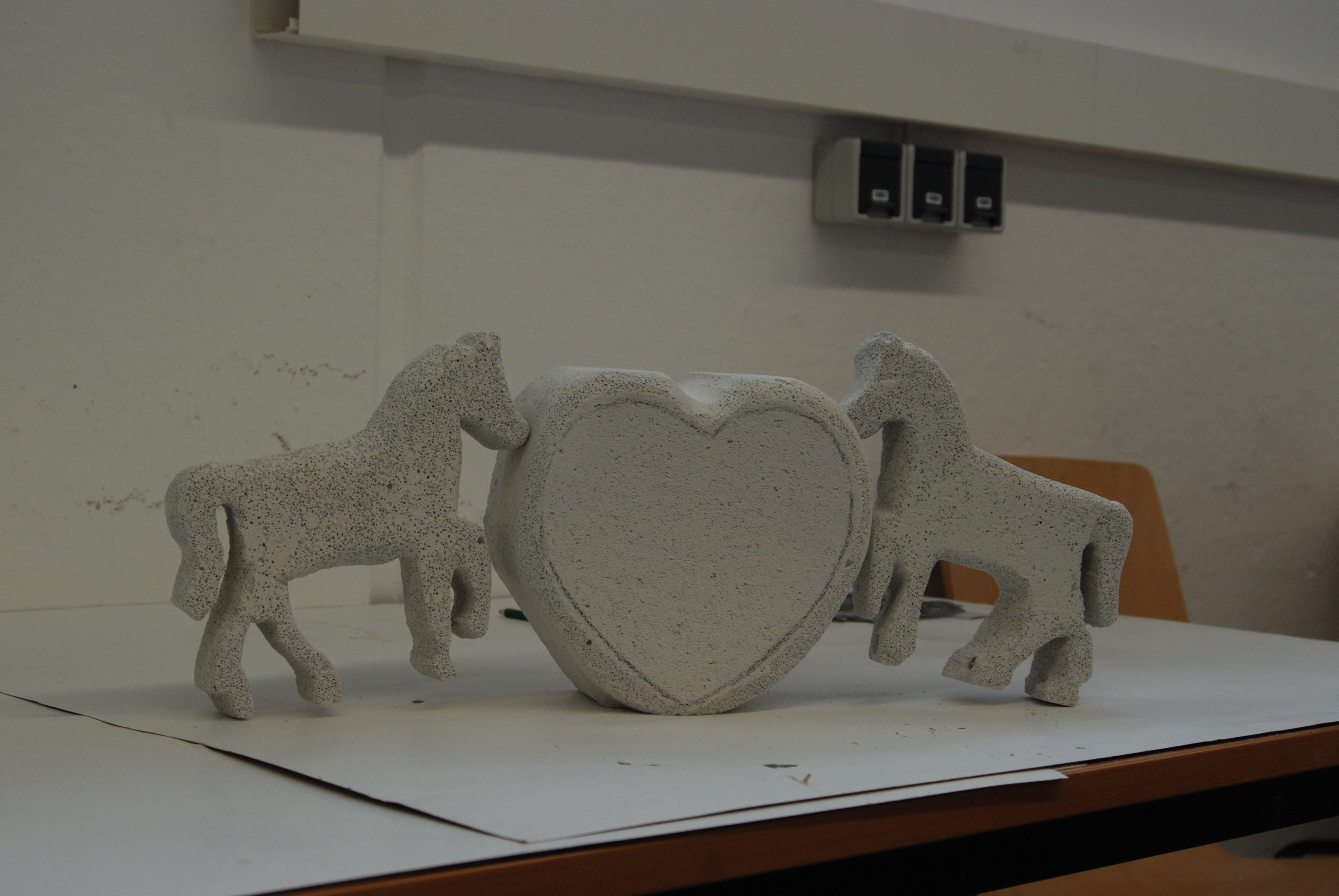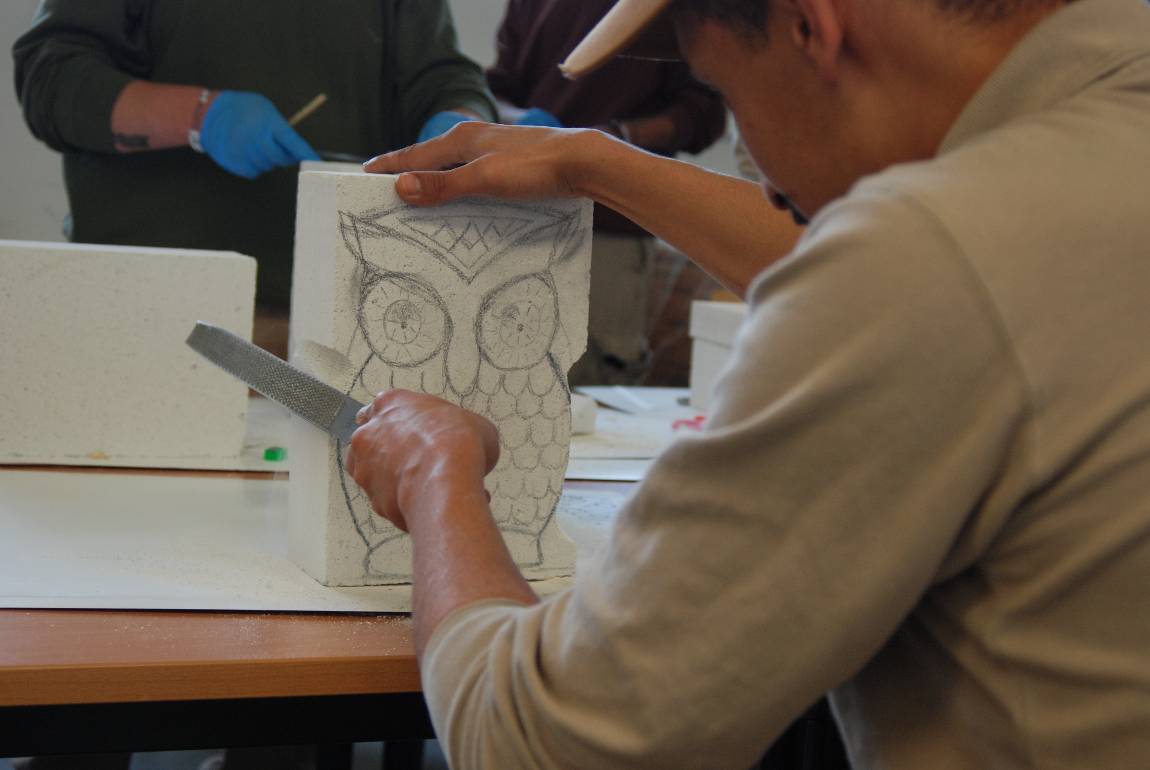 Es wurden Vorlagen entworfen, Schablonen abgepaust oder einfach darauf losgearbeitet. Jeder konnte auf seine eigene Weise etwas in Stein zum Ausdruck bringen – und dazu gehörte nicht viel: das passende Werkzeug, das von der Arbeitstherapie zur Verfügung gestellt wurde, ein paar Porenbetonsteine und ein bisschen Spaß an der Sache.